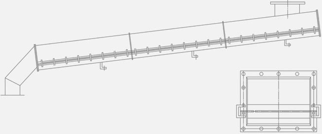 輸送物料的高端喂入上殼體,壓縮空氣由專設(shè)的鼓風(fēng)機(jī)吹入下殼體并通過(guò)密布孔隙的透氣層分布在物料顆粒之間,使物料進(jìn)行所謂的氣化以改變物料的磨擦角,以其形成流動(dòng)狀態(tài),而沿斜度下滑達(dá)到輸送目的。