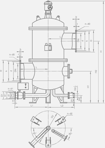 本機(jī)設(shè)有自動(dòng)反沖洗功能,安裝了高精度靈敏的差壓控制器,監(jiān)測(cè)進(jìn)出腔的壓力值,當(dāng)兩腔由于渣堵塞濾芯引起壓力差達(dá)到設(shè)定值時(shí),差壓控制器輸出電信號(hào),啟動(dòng)反沖系統(tǒng),將渣排出。本機(jī)使用一段時(shí)間后,對(duì)沉積罐底的固體物質(zhì),可通過本機(jī)下方手動(dòng)球閥排出。當(dāng)設(shè)備檢修時(shí),還可以打開罐體上的盲蓋,人工進(jìn)一步清除罐體內(nèi)大型垃圾。
